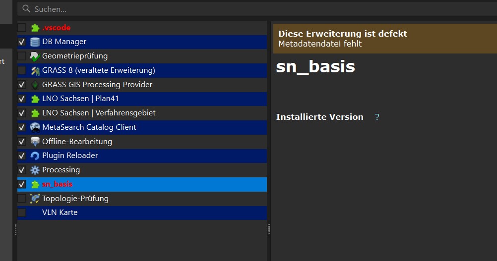 Ich hab ...flurneuordnung-sachsen.de/AG_QGIS/Plugin_SN_Basis als upstream angebunden und von dort einen neuen Branch ausgecheckt. Der ist jetzt in meinem vsCode und ich kann damit das Plugin nicht in QGIS laden
